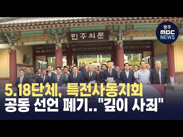 5.18부상자회와 공로자회가특전사동지회와 맺은 '대국민 공동 선언'을1년 6개월 만에 폐기 하고, 광주시민들에게 사과했습니다.5.18부상자회 등은 오늘(11) 국립5.18민주묘지에서 기자회견을 열고"지역 사회의 논의를 거치지 않고 일방적으로 추진했던 대국민 공동선언을 공식 폐기한다"면서 "재발방지를 위해 모든 행위는 ...