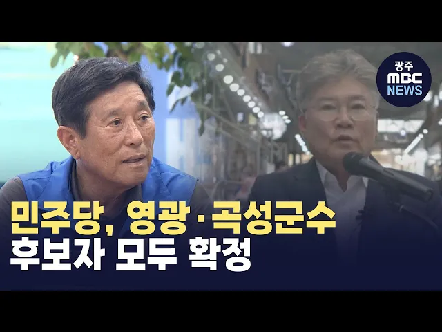 더불어민주당인 10*16 재선거에 출마할 곡성군수와 영광군수 후보자를 모두 확정했습니다.민주당 중앙당선거관리위원회는 어제(7) 강대광 전 곡성군의원, 유근기 전 곡성군수, 조상래 전 전남도의원 등 3명의 경선을 진행한 결과 조상래 전 도의원을 곡성군수 재선거 후보로 결정했다고 밝혔습니다.민주당은 앞서 지난 3일,...