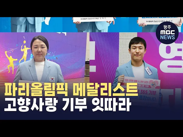 파리올릭픽에서 메달을 목에 건 전남 출신 선수들이 잇따라 고향사랑 기부제에 동참하고 있습니다.전라남도에 따르면여자 양궁의 남수현과 여자 복싱 임애지등 전남 출신 파리올림픽 메달리스트 5명이365 고향사랑기부 캠페인에 동참했습니다.365 고향사랑기부 캠페인은 하루 천원씩 연간 36만 5000원을 기부해 고향사랑을 ...