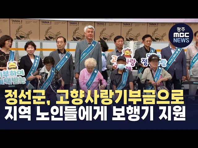 (앵커)고향사랑기부금으로 받은 돈을 의미있게 사용하는 자치단체들이 늘고 있죠.곡성군은 기부금으로 소아과를 개설하기도 했는데요.강원도 정선군은 고향사랑기부금으로 지역 노인들에게 보행기를 지원했습니다.MBC강원영동 김인성 기자가 소개합니다.(기자)대형 트럭에 성인용 보행기 제품이 가득 실려 있습니다.정선군...