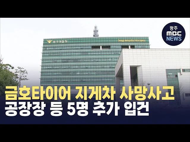 금호타이어 광주공장에서 발생한지게차 사망사고와 관련해 경찰이 공장장 등 5명을 추가로 입건했습니다.광주경찰청은 지난달(7월) 2일 금호타이어 광주공장에서지게차에 실린 고무가 쏟아져 40대 노동자가 숨진 사건과 관련해 지게차 기사 외에광주공장장과 안전팀장 등 5명을 추가로 입건했다고 밝혔습니다.경찰은 안전관...