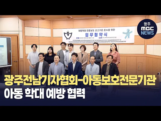 광주전남기자협회와 지역 아동보호전문기관 7곳이 어제(26일) 아동 학대 예방을 위한 업무협약을 체결했다고 밝혔습니다. 이에 따라, 기자협회는아동학대 언론보도 권고 기준을 지키기 위해 노력하고,아동 기관은 전문가 자문 등언론에 필요한 정보를 제공하게 됩니다. 이번 협약은 아동학대 관련 보도의 문제점을 개선하고...