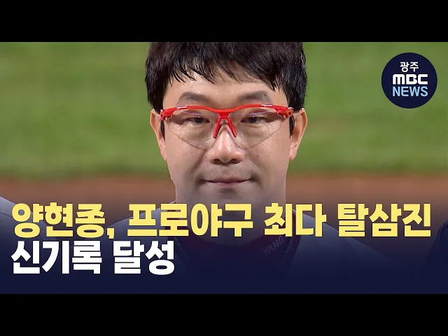 기아 타이거즈 양현종 투수가프로야구 통산 최다 탈삼진 신기록을 세웠습니다.양현종 선수는어제(21) 열린 롯데와의 홈 경기에서1회 황성빈을 삼진으로 돌려세우며10시즌 연속 100탈삼진 기록을 세웠습니다.이어 3회에는 윤동희 선수에게 삼진을 뺏으며통산 2049개의 탈삼진으로종전 최고기록인 송진우의 2048개를 넘어섰습...