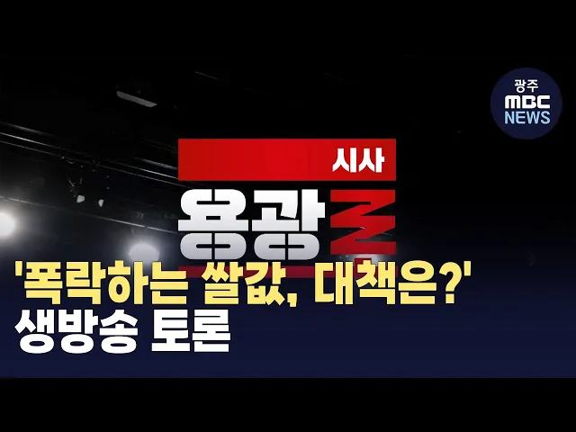 쌀값 폭락의 원인과 대책을 살펴보는 토론이생방송됩니다.광주·목포·여수MBC는 잠시 뒤 9시부터 시사토론 프로그램인 '시사용광로' 시간에쌀값 하락의 심각성을 살펴보고수확기마다 반복되는 쌀값 폭락을 막기 위한근본 대책은 무엇인지 이야기 나눠봅니다.오늘 토론에는 전종덕 진보당 국회의원,정학철 전국농민회 광주전...