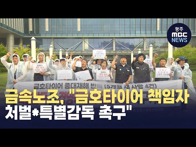 최근 금호타이어 공장에서 노동자 사망사고가 잇따르자노동단체가 책임자 처벌과 특별감독을촉구했습니다.전국금속노조 광주전남지부는 오늘(21)기자회견을 열고"최근 5개월간 금호타이어 국내외 공장에서4명의 노동자가 사망한 것에 대해노동당국은 특별감독을 통해 안전 문제를 집중 점검 해야한다"고 주장했습니다.이들...