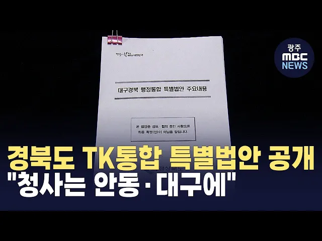(앵커)경상북도가 2백여 개의 특례가 담긴'대구경북 행정통합 특별법안'을 공개했습니다.대구시가 자체 법안을 공개한 지 나흘 만인데요.가장 쟁점이 되는 청사 위치를 두고,경상북도는 현행대로 대구와 안동 2곳으로 유지하겠다고 밝혔습니다.안동문화방송김경철 기자입니다.(기자)경상북도가 공개한 '대구경북 행정통합 ...