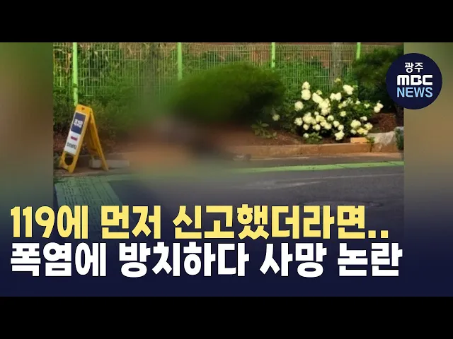 (앵커)지난주 장성에서는 폭염 속에 에어컨을 설치하던 20대 노동자가 온열질환을 호소하다 숨지는 일이 있었습니다.유족은 사고 당시 사측이 119에 신고를 하지 않는 등초기 대처가 미흡했다며 철저한 진상 규명을 촉구하고 있습니다.보도에 김영창 기자입니다.(기자)대낮에 한 남성이 화단에서땡볕을 그대로 맞으며 누워 ...