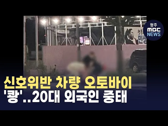 신호위반 차량이 오토바이를 들이받아20대 외국인 남성이 중태에 빠졌습니다.어젯밤 8시 10분쯤 광주 광산구의 한 도로에서 60대가 몰던 경차가 오토바이를 들이받아 오토바이 운전자인 20대 외국인이 병원으로 옮겨졌지만 중태입니다.경찰은 경차 운전자가 신호위반을 한 것으로 보고 정확한 사고 경위를 조사하고 있습니...