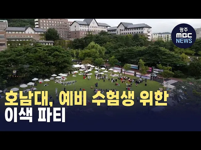 호남대가 예비 수험생들에게 진로 탐색과 휴식 기회를 제공하는 이색 체험 행사를 열었습니다.호남대는 어제 예비 수험생과 가족들을 캠퍼스로 초청해 마흔 개 학과별로 진로 팀색과 실습 기자재 체험 기회를 제공하고 저녁에는 치킨과 콜라를 마시며 퀴즈 풀이와 불꽃놀이를 즐기는 파티를 열어 무더위에 지친 수험생들을 ...