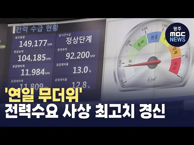 연일 폭염과 열대야가 이어지면서냉방부하 증가 영향으로 전력 수요가 또다시 최대치를 경신했습니다.전력거래소는 13일 오후 6시 기준 최대 전력 수요는 94.6기가와트로, 여름철·겨울철을 통틀어 역대 가장 높게 집계됐다고 밝혔습니다.전력거래소는 다만 예비력은 10.1기가와트로, 전력수급은 안정적으로 유지되고 있다고...