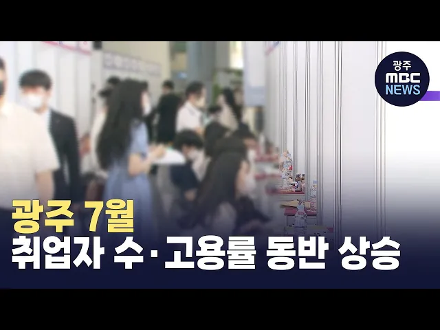 광주의 취업자 수과 고용률이1년 전보다 개선된 것으로 나타났습니다.호남지방통계청이 발표한7월 고용동향에 따르면광주의 취업자 수는 78만4천 명으로1년 전보다 1만 명 늘었고,고용률은 61.3%로 0.8% 포인트 상승했습니다.업종별로는 서비스업과 광공업 분야에서취업자 수가 늘어난 반면도소매와 음식업, 건설업 분야에...