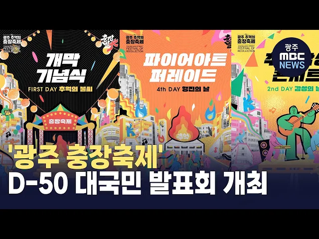 제21회 광주 충장축제 개막 50일을 앞두고 '대국민 발표회'가 오늘(13) 광주 동구청에서 열렸습니다.이번 발표회에서 동구청은 충장축제 공식 홍보영상과 시민참여 프로그램, 13개 행정동 퍼레이드 연출안 등을 300여명의 시민들에게 공개했습니다.오는 10월 열리는 충장축제는'원 데이, 원 빅이벤트' 운영을 목표로 일자별...