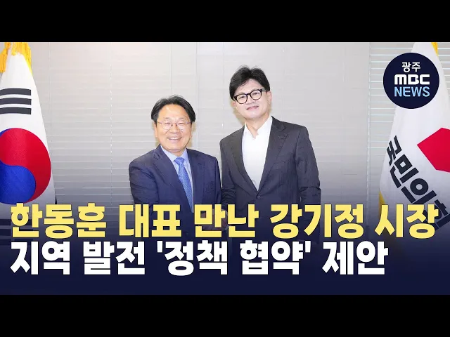 강기정 광주시장이국민의힘 한동훈 대표를 만나지역 발전을 위한 협력을 요청했습니다.강 시장은 국민의힘 중앙당사를 찾아한동훈 대표와 면담하며기후대응, 돌봄*복지 등국가적 현안 협력을 위해광주시와 정당 간 정책협약 체결을 제안했습니다.또 5.18 정신 헌법 전문 수록을 위해함께 협력하고 인공지능 2단계 조성 산업...