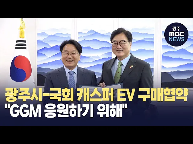 광주시가 오늘(13) 국회에서우원식 국회의장과 캐스퍼 전기차 구매협약을 체결했습니다.광주시는 일자리 지원의 법률적 근거를 마련한 국회가 전기차 생산으로 제2 도약에 나선GGM을 응원하려는 취지라고 설명했습니다.국회는 업무용 공용차량으로캐스퍼 일렉트릭을 구매해 사용할 예정입니다.한편, 강기정 광주시장은우 의...