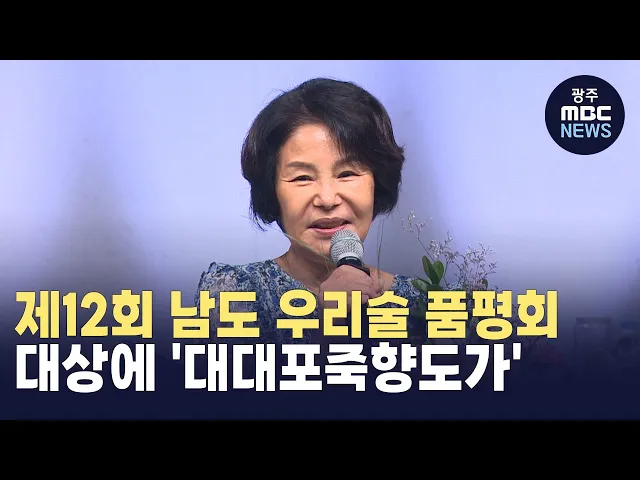 올해로 12회를 맞은 '남도 우리술 품평회'가 오늘(13) 광주MBC 공개홀에서 열렸습니다.이번 품평회에서 대상에는 죽향도가의 '대대포블루죽향도가' 선정됐고 최우수상엔 막걸리 부문에 '숲향벼꽃 술도깨비', 약청주 부문에 '나주배약주' 등모두 9개 제품이 선정됐습니다.수상된 제품들은 오는 11월 7일부터 사흘 동안남도주...