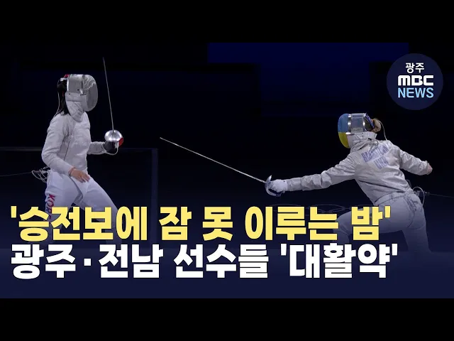 (앵커)2024 파리 올림픽에 출전한 우리나라 선수들의 메달 소식에밤 잠을 설치시는 분들 많으시죠.이중 광주전남 선수들의 활약은 단연 돋보입니다.김영창 기자가 보도합니다.(기자)한국 여자복싱의 간판 임애지가 위풍당당한 모습으로 링 위에 오르자 고향 화순군이 들썩입니다.임 선수의 부모와 코치진, 지역민 등 150명...