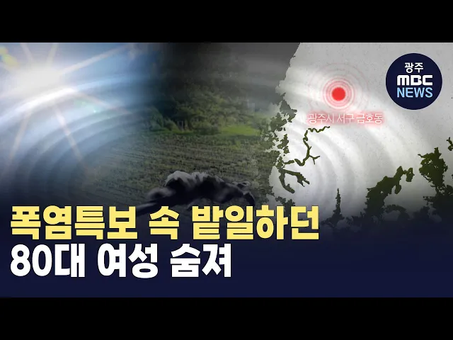 광주 지역에 16일째 폭염특보가 이어지는 가운데 밭일을 하던 80대 어르신이 쓰러져 숨졌습니다.광주 서부소방서에 따르면 어제(3일) 오후 2시 51분쯤 광주시 서구 금호동의 한 밭에서 80대 여성 A 씨가 쓰러졌다는 신고가 접수됐습니다.현장에 도착한 구급대원들은 체온이 42도까지 올라간 A씨에게 심폐소생술 등응급처치...
