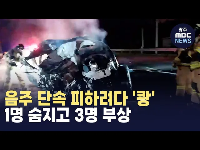 (앵커)여름 휴가철을 맞아 경찰이 음주운전 단속을 강화하고 있는데요.음주 운전 의심자들이단속을 피해 달아나다가잇따라 교통사고를 냈습니다.차량운전자 1명이 숨지고경찰관 등이 부상을 입었습니다.김영창 기자의 보돕니다.(기자)소방관들이 불이 붙은 차량을 향해 연신 물을 쏘아 대고 있습니다.함평의 한 국도변에서 ...