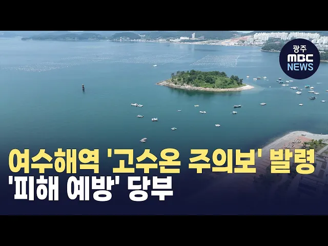 여수해역에 고수온 주의보가 발령됐습니다.주의보가 발령된 곳은가막만과 여자만, 거문도 해역으로,장마전선이 물러가고 무더위가 계속되면서수온이 지속적으로 상승할 것으로 예상됩니다.수산당국은 고수온으로 인한양식 생물 피해가 우려된다며사료공급을 중단하고 산소를 공급하는 등피해 예방 활동에 동참해 달라고 당...