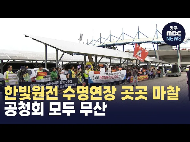 (앵커)수명이 다한 영광 한빛원전 1,2호기를10년 더 연장하기 위한 주민공청회가 잇따라 무산됐습니다.주민과 환경단체 등이 거세게 반발하면서공청회가 파행되는가 하면지자체가 공청회 장소를 제공하지 않는 등갈등이 장기화 되고 있는건데요.오늘은 이 문제를 집중보도합니다.먼저 김영창 기자가 현재 영광 한빛원전을둘...