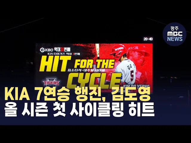 기아 타이거즈가사이클링 히트를 기록한 김도영과양현종의 완투승에 힙입어쾌조의 7연승 행진을 이어갔습니다.기아 타이거즈는어제(23) 열린 NC와의 홈 경기에서김도영과 양현종의 공수에 걸친 활약으로8대 1로 승리를 거뒀습니다.김도영 선수는안타와 2루타, 3루타에 이어 홈런까지연달아 터뜨리며올 시즌 처음으로 사이클...
