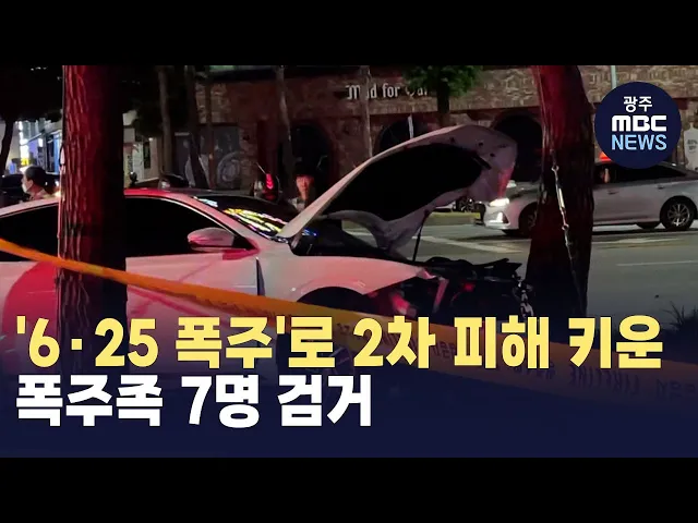 6.25전쟁기념일 새벽 광주 도심 한복판에서 오토바이 폭주로 2차 피해 사고를 키운 10대 폭주족들이 검거됐습니다.광주경찰청 교통과는 도로교통법상 공동위험 행위 혐의로 오토바이 폭주족 7명을불구속 입건했습니다.당시 도로에는 이들을 구경하기 위해 모여있던 10대 3명이 오토바이 폭주족이떠난 직후 발생한 차량 충돌...