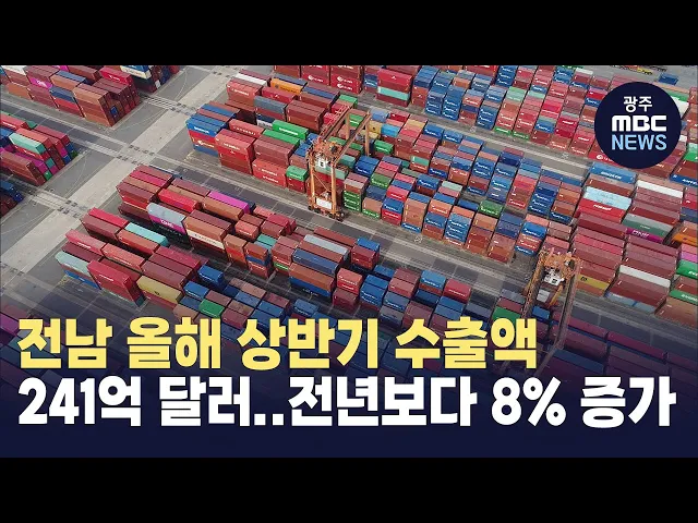 전라남도의 올해 상반기 수출액이 전년 같은 기간보다 8% 증가한 241억 달러를 돌파했습니다.주요 수출품목은석유와 석유화학제품, 철강, 수송기계 등으로 특히, 화학공업제품 수출액은 전년보다 782.9% 증가해 가장 큰 폭의 증가세를 보였습니다.또한, 농수산식품 분야도김과 쌀 수출 증가에 힘입어 역대 최대인 25.5% 늘...