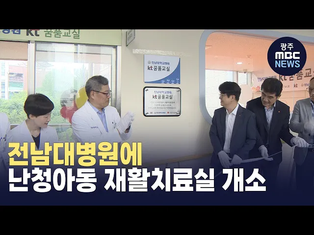 난청 아동의 재활치료 공간이호남지역 최초로 전남대학교병원에 문을 열었습니다.전남대병원은 오늘(17)KT, 사회복지공동모금회와 함께 ‘난청아동 지원 협력을 위한 업무 협약’을 체결하고 소아과 병동에 재활치료 공간인 ‘KT꿈품교실’을 개소했습니다.꿈품교실에서는언어음악 재활치료와 사회성 향상을 위한 교육 등 다양...