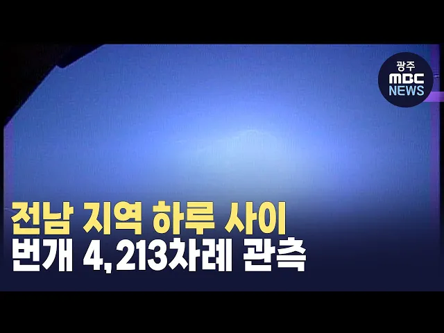 장마의 영향으로 전남에 하루동안4천 차례가 넘는 번개가 친 것으로 나타났습니다.광주기상청에 따르면 16일 0시부터 오후 3시 30분까지전남 22개 시군에서 낙뢰가 4,213번 관측됐습니다.이는 지난해 7월 한달동안 기록된낙뢰 횟수의 85% 수준으로 기상청은 비 구름대의 이동이 느려지면서낙뢰 횟수가 증가한 것으로 분석했...