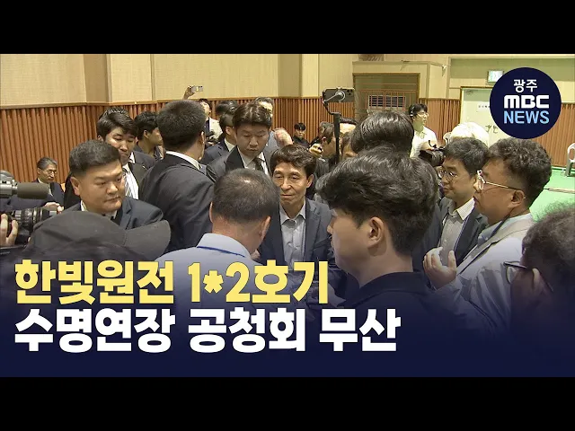 영광한빛원전 1~2호기 수명연장을 위한공청회가 지역 주민과 환경단체들의 거센 반발로 무산됐습니다.오늘 오후 2시 영광에서 열린 영광한빛원전 1~2호기 수명연장 공청회가 시작과 동시에 주민들이 단상을 점거하고,의자를 뒤엎는 등 20분만에 종료됐습니다.한국수력원자력측은 주최측의 귀책사유가 아닌주민들의 반발에 ...