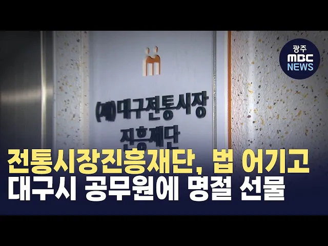 (앵커)대구전통시장진흥재단이 청탁금지법을 어기고 지도·감독 업무를 맡는 대구시 관련 부서 공무원에게 명절 선물을 돌렸다가 대구시 감사에서 적발됐습니다.대구문화방송 도건협 기자가 보도합니다.(기자)대구전통시장진흥재단은 재작년(지난 2022년) 추석과 지난해 설, 4만 원짜리 과일 선물세트를 대구시 담당 공무원...