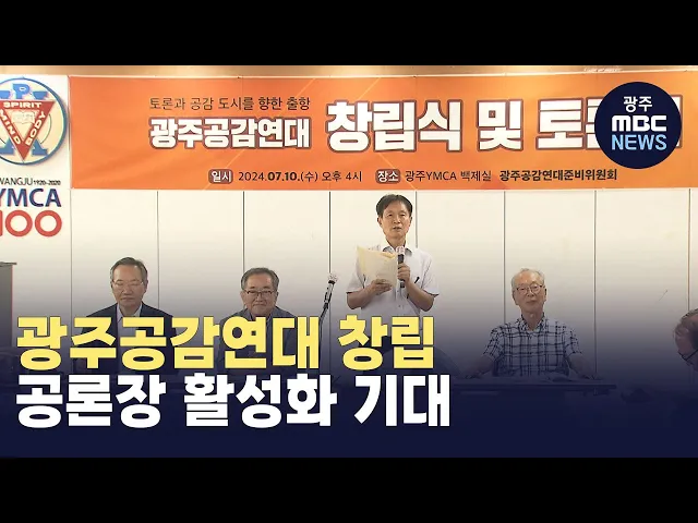 시민단체 광주공감연대가 오늘(10일) 오후 광주 YMCA에서 창립식을 열었습니다.광주공감연대는 교수와 시민활동가 등 35명으로 출범하고, 사회적 문제를 다루는 토론회 등공론장을 만들어 나갈 계획입니다.이를 위한 10대 공론화 의제에는 지역소멸과 광주전남통합, 광주공항이전 등이선정됐습니다. #광주공감연대 #창립식