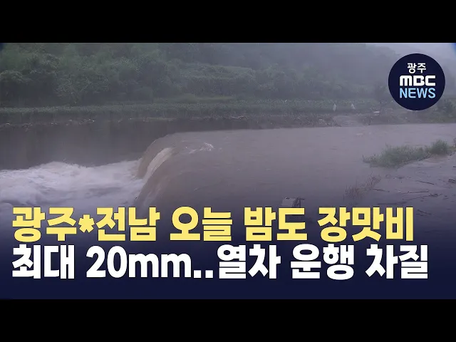 장맛비가 소강상태를 보인 가운데오늘(10) 밤 광주와 전남지역에 5∼20㎜, 전남 남해안 지역은 60㎜ 이상 비가 내리겠습니다.광주지방기상청은 대기불안정이 계속되면서내일(11)도 광주와 전남 지역은 5~40mm 소나기가 내릴 것으로 전망했습니다.한편 어제 충청과 남부지방에 많은 비가 내리면서 열차 운행이 차질을 빚고 있...