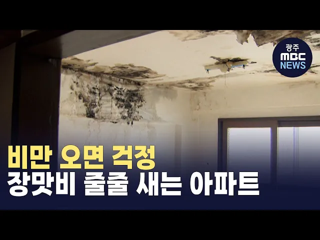 (앵커) 장마철 시름이 더 깊어지는 이들이 있습니다.바로 노후 아파트 주민들인데요.빗물 누수가 심해 집집마다 곰팡이에 화재 위험까지 도사리고 있습니다.장마철이 되면 그야말로 공포를 느낀다고하는 주민들을 김규희 기자가 만나봤습니다.(기자) 주말 동안 100㎜ 가까운 많은 비가 내린 목포 시내 한 주상복합 아파트....