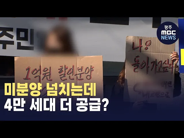 (앵커)전남에서 아파트 미분양 물량이가장 많은 지역이 광양입니다.고금리와 경기 침체로부동산 시장은 여전히 냉랭한데앞으로 10년 동안광양에만 4만 세대가 더 공급될 예정이어서대책 마련이 필요하다는 지적이 나오고 있습니다.김단비 기자입니다.(기자)8천만 원 할인 분양으로 기존 입주민들의 반발을 사고,중도금 무이...