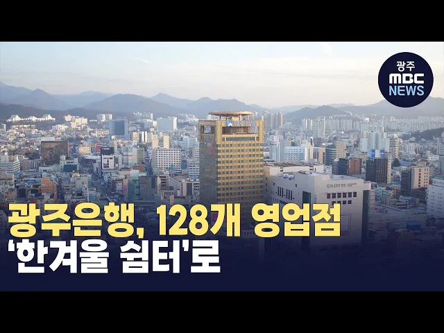 광주은행이 겨울 한파에 대비해한겨울 쉼터 운영를 운영합니다.광주은행은 한파와 폭설 등 겨울 찬바람을 피하기 위해 128개 모든 영업점에서 내년 2월 말까지한겨울 쉼터 운영에 들어간다고 밝혔습니다.영업점을 찾는 고객에게는 쉼터 제공과 함께 휴대용 핫팩을 무료로 나눠줍니다.