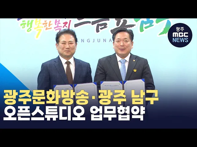 광주문화방송과 광주 남구가 양림동에 있는 오픈스튜디오 운영과 관련해 업무협약을 맺었습니다.양림동에 있는 오픈 스튜디오를 앞으로 보다 적극적으로 활용하기 위해 맺어진이번 협약으로 펭귄마을 공예거리와역사문화마을 활성화가 앞으로 기대됩니다.