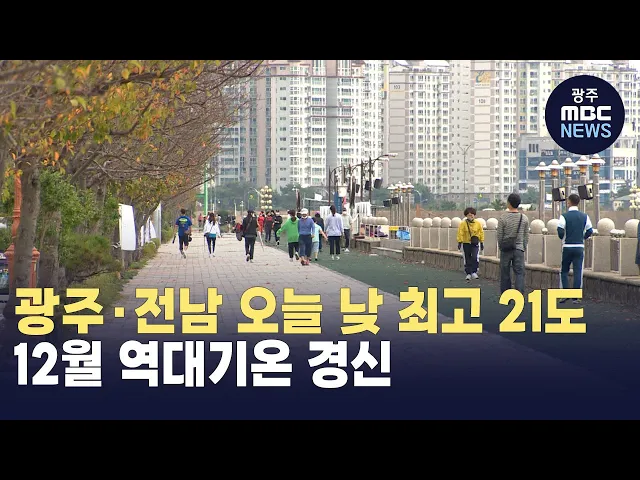 오늘 광주·전남 지역이 낮 최고 20도를 웃도는 등 12월 역대 가장 높은 기온을 기록했습니다.광주지방기상청에 따르면 12월 낮 최고기온 경신 지역은 해남 21도 순천 20.5도, 장흥·광양 20.4도, 진도 20.3도, 광주 20.2도, 흑산도 19도 순입니다.기상청은 남서풍 유입으로 평년보다 기온이 10도 높았던 것으로 분석된다며...