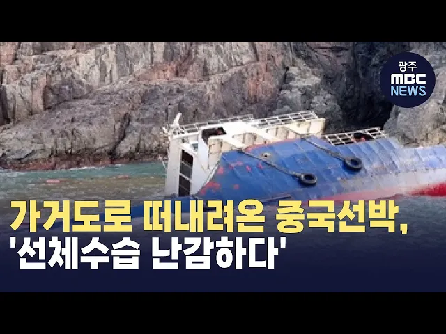 (앵커)중국화물선이 신안 가거도로 떠내려와 침몰했지만 선체 수습이 계속 지연되고 있습니다.중국 화물선 소유주가 잠적해 버렸기 때문인데 많은 예산이 들다보니 관계기관들이 난감해하고 있습니다.안준호 기자가 취재했습니다.(기자)지난달 29일 신안군 가거도 인근 해상중국에서 떠내려온 중국 선적의 200톤급 화물선이...