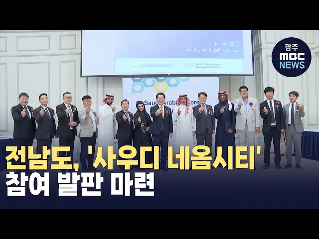 (앵커) 전라남도가 사우디아라비아 기업이 설계중인 미래스마트 도시 이른바 '네옴시티' 참여발판을 마련했습니다.전남지역 기업들의 해외진출 기회가더욱 확대될 것으로 보입니다.박종호 기자가 취재했습니다.(기자)전라남도가 사우디아라비아 수도 리야드에서'에너지위크' 행사를 열었습니다.전남에너지 기업과 사우디 기...