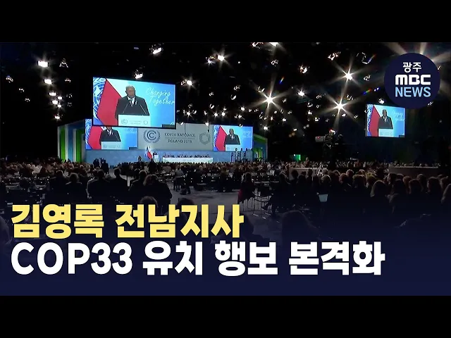 김영록 전남지사가 2028년 개최 예정인 '제33차 유엔기후변화협약 당사국총회' 전남 유치 행보를 본격화하고 나섰습니다.김 지사는 내일(30)부터 아랍에미리트 두바이에서 열리는'COP28' 개막식에 참석할 예정이며정부대표단을 만나 33차 총회 남중권 개최를 위한 대정부 건의에 나섭니다.또 세계 최대 지방정부 네트워크인...