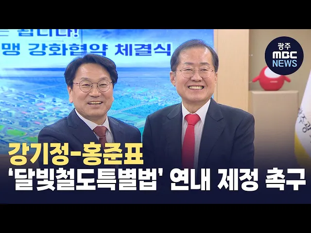 강기정 광주시장과 홍준표 대구시장이 ‘달빛철도특별법 제정안’의 연내 국회 통과를 촉구하며 국회에 건의서를 전달했습니다. 광주시에 따르면 건의서에서 양 시장은해당 특별법이 국회의원 261명이 공동발의한 영호남 상생 발전 법안인 만큼 국회의장과 여야 정당에 반드시 연내 제정을 촉구했습니다. 국회 국토교통위 법...