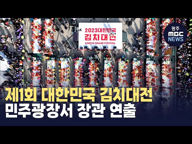 (앵커) 국가 법정기념일인 11월 22일 김치의 날에 맞춰 오늘제1회 대한민국 김치대전이 열렸습니다.5.18 민주광장에서 1천 1백22명의 시민들이 김장 1만포기를담그는 장관이 연출됐습니다.오늘은 이 소식을 집중보도합니다.먼저 천홍희 기자입니다.(기자)하얀 배추에 빨간 양념이 버무려집니다. 배추 사이사이에 꼼꼼히 양...