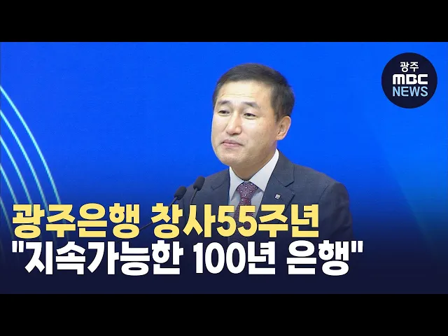 광주은행이 창사 55주년 기념식을 갖고지속 가능한 100년 은행으로의 성장과지역경제 버팀목이 될 것을 다짐했습니다.고병일 광주은행장은지역민의 한결같은 사랑과 격려로총자산 30조원의 대표은행으로 성장했다며,전문성 강화와 경쟁력 제고, 상생 등을 통해지역경제에 활력소가 되도록 더욱 노력하겠다고 밝혔습니다.특...