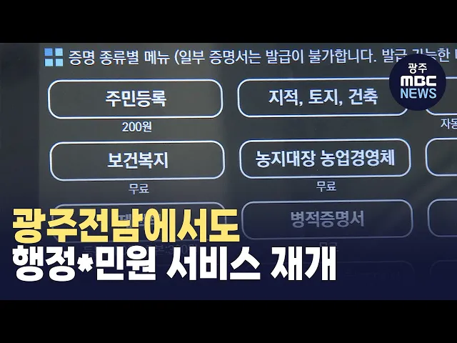 (앵커)지난 17일 정부 행정전산망 오류로 중단됐던 민원 서류 발급이 광주전남에서도 재개됐습니다.각 주민센터에는 서류 발급을 받으려는 민원인들의 발길이 이른 아침부터 이어졌습니다박종호 기자가 취재했습니다. (기자)목포의 한 행정복지센터이른 아침부터 주민등록등본 등 민원서류를 발급 받으려는 사람들로 북적입...