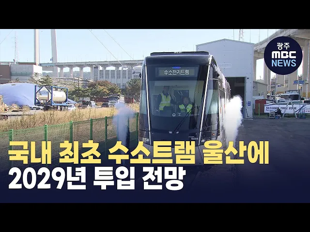 (앵커)수소전기를 연료로 달리는 차세대 수소전기트램이 국내 최초로 울산에서 첫 선을 보였습니다.이 트램은 올해 말까지 2천500km 시험주행을 거쳐 오는 2029년 울산 1호선에 투입될 전망입니다.울산문화방송 이용주기자입니다. (기자)하나. 둘. 셋. 출발-국내 최초의 수소전기 트램이 모습을 드러냅니다.공기 중 산소와 ...