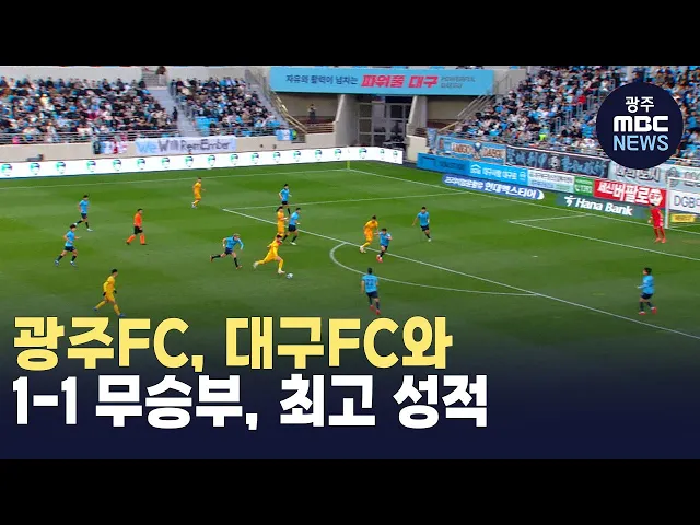 광주FC가 어제(11일) 대구은행파크에서 열린 대구FC와의 경기에서 1대 1 무승부를 기록했습니다. 전반 18분 베카가 오른발 중거리 슈팅을 날려 1점을 얻었지만,전반 40분 코너킥 상황에서 김강산에 실점을 허락했습니다. 이로써 광주FC는 올 시즌 최소 5위를 확정 짓고,2020년 K리그1 최다 순위 6위를 넘어,역대 최고 성적...