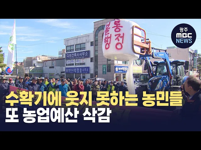 (앵커) 물가는 물론 최저임금도 매년 오르고 있지만 20년 째 그대로인 것이 있습니다. 바로 '쌀값'인데요. 농민들은 쌀값 하락 등으로 어려움을 겪고 있습니다. 그런데 농업 관련 예산들마저 잇따라 삭감되면서 농민들이 반발하고 있습니다. 김진선 기자가 취재했습니다.(기자) 수확을 마친 벼논 위에 있어야 할사료용 볏...