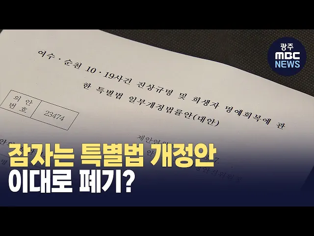 (앵커)21대 국회의 활동 기간이 6개월여밖에 남지 않았는데국회에 발의된 여순사건 특별법 개정안의 대부분이 처리되지 않고 있어 이대로 폐기되는 것 아니냐는 우려가 커지고 있습니다.문형철 기자입니다. (기자)여순사건 특별법 개정안입니다. 과거 진실화해위원회에서 피해 사실이 확인된 경우 등에는 따로 신고서를 제...