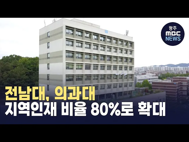전남대학교가 의과대학 신입생 정원 중 지역인재 비율을 80%까지 늘리기로 했습니다.전남대학교는 95명을 선발하는 내년도 의대 수시전형에서 81명을 광주,전남북 출신 고교생으로 선발합니다.정시 모집 인원까지 포함한 지역인재 선발 비율은 75%대로,내후년인 2025년에는 80%까지 높일예정입니다.전남대 의대의 신입생 모...